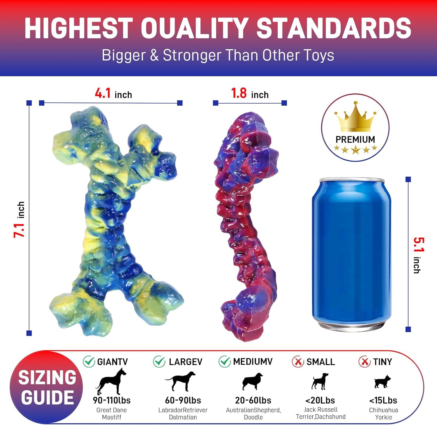 2 Pack Dog Toys for Aggressive Chewers, Indestructible Chew Toys for Dogs, Boredom and Stimulating Best Dog Toys for Medium/Large Breed,Tough Bones for Teeth Cleaning and Training