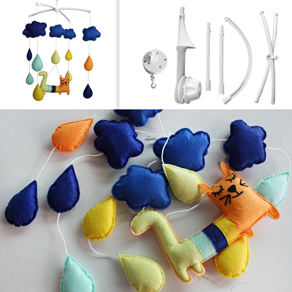 Each package contains a Baby Crib Mobile Bed Bell Holder Arm Bracket and a Wind-up Music Box and toys. This handmade baby crib mobile plays light music to help your baby easily fall asleep. Easy operation and convenient to use, it will rotate while playing music. Each mobile plays Only One soothing pure and light song. Keep baby calm and happy, with this mesmerizing mobile. It is an essential product for baby and nursery. The toys are made from nonwoven fabric. Please note: Can be customized, please contact us about the size you need, otherwise we will ship the item in original size to you.