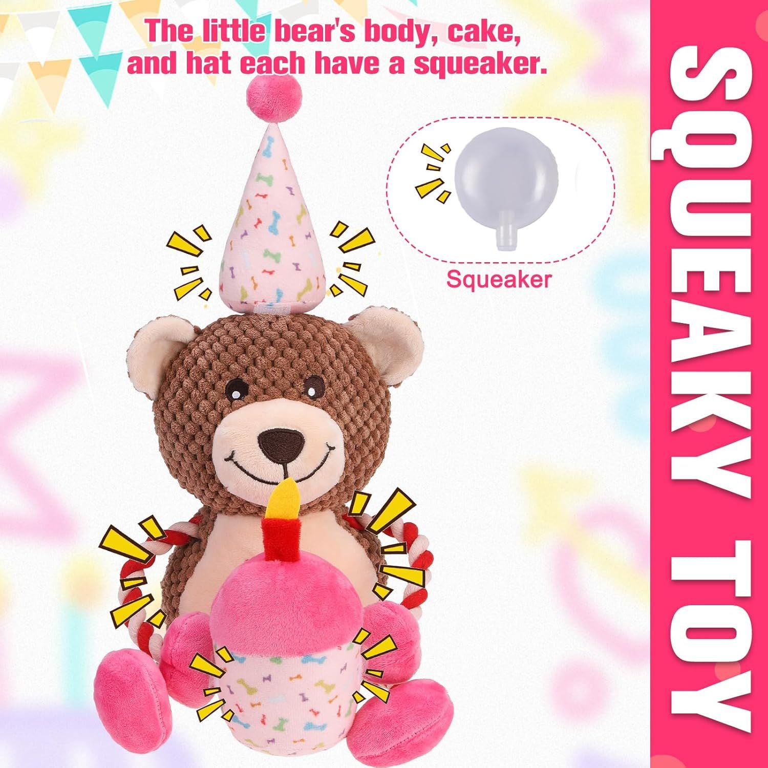 Home > Birthday Dog Toys for Aggressive Chewers, Interactive Doggie Squeaky Toy with Cake H, Indestructible Plush Toys with Crinkle Paper