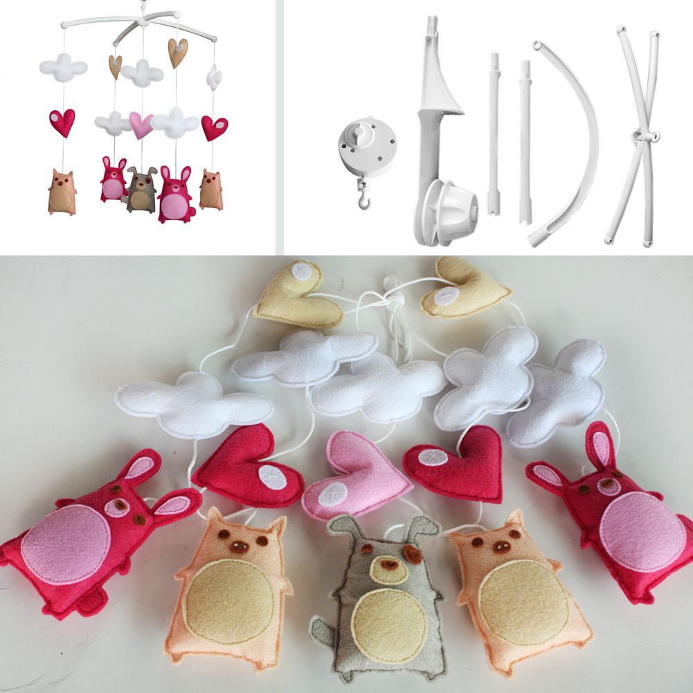 Each package contains a Baby Crib Mobile Bed Bell Holder Arm Bracket and a Wind-up Music Box and toys. This handmade baby crib mobile plays light music to help your baby easily fall asleep. Easy operation and convenient to use, it will rotate while playing music. Each mobile plays Only One soothing pure and light song. Keep baby calm and happy, with this mesmerizing mobile. It is an essential product for baby and nursery. The toys are made from nonwoven fabric. Please note: Can be customized, please contact us about the colors you like, otherwise we will ship the item in original color to you.