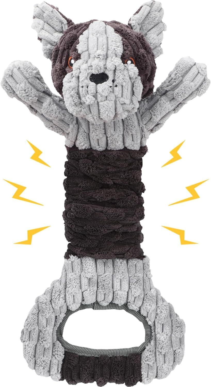 Plush Dog Squeak Toys with Crinkle Paper - Pull Interactive Tug of War Dog Toy, Great for Dental Health
